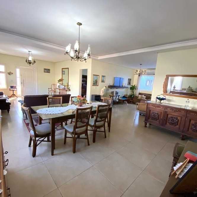 Na parte superior, apartamento com 396,91m², com sala de estar e jantar, escritório, 3 dormitórios, sendo 2 suítes, 3 banheiros, cozinha, 2 sacadas, a da frente fechada com vidro, área de serviço, churrasqueira, elevador e garagem para 8 carros, terreno com 13,20m de frente por 51,50m da frente aos fundos.