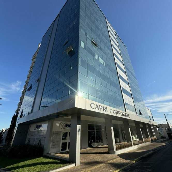 Aluga se sala comercial no Condomínio Capri Corporate na Rua Coronel Pillar , esquina com a praça da Matriz, no 4º andar, com 104,22 m² de área privativa, banheiro e garagem.