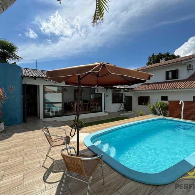 Vende-se casa de alvenaria, com de 3 dormitórios, sendo 1 suíte com closet, sala de estar e jantar, estar íntimo com lareira, escritório, banheiro social, lavabo, cozinha, área de serviço e garagem para 2 carros. Conta ainda com um quiosque com churrasqueira e piscina com aquecimento solar, possui 244,76 m² de área construída, em terreno medindo 12,00 m de frente por 30,00 m da frente aos fundos, toda murada e gradeada.