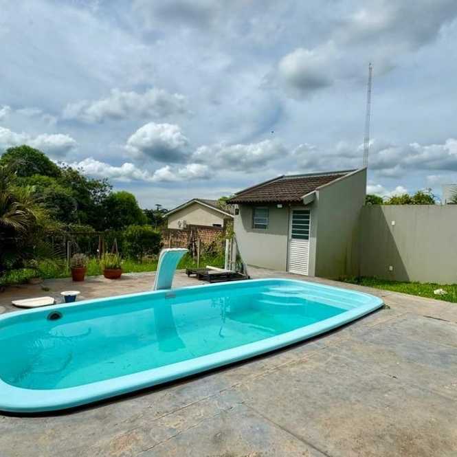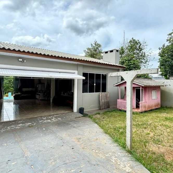 Vende se casa de alvenaria, com 3 dormitórios, sendo 1 suíte, sala de estar e jantar integradas, lareira, jardim de inverno, lavabo, banheiro social, cozinha funcional e área de serviço. Possui ainda garagem, amplo salão de festas, equipado com churrasqueira, banheiro e despensa, piscina, jardim e amplo pátio, imóvel com 276,65 m² de área construída e terreno com 12,00m de frente por 56,00m da frente aos fundos.
