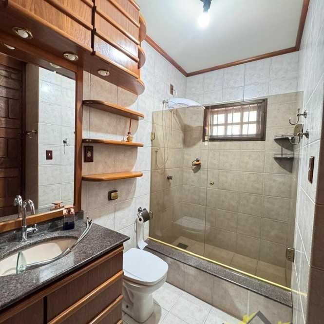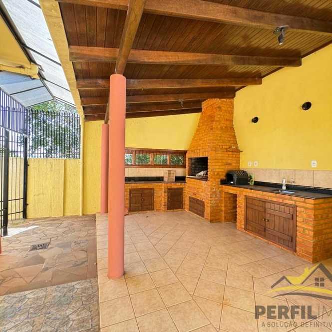 Vende-se casa de alvenaria com dois pisos, o imóvel conta com 3 dormitórios, sendo 2 suítes, sala de estar, sala de jantar e estar íntimo com lareira, possui ainda 4 banheiros, cozinha, área de serviço e garagem para 1 carro. Na área externa, o imóvel dispõe de um quiosque com churrasqueira e banheiro, imóvel com 262,63m² de área construída e terreno com 12,50m de frente por 25,34m da frente aos fundos.